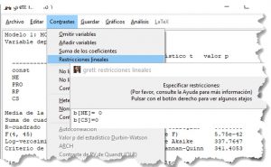 - Gretl : «Contrastes» – «Restricciones lineales«